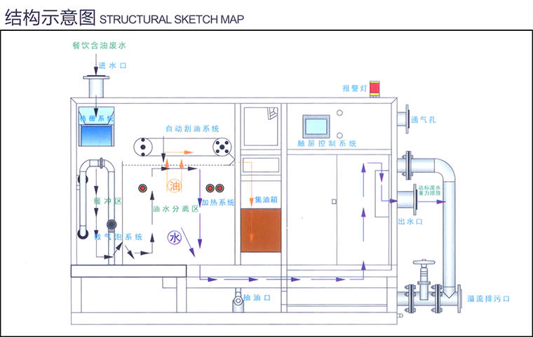 设备简介 隔油池(oil separator)是利用油与水的比重差异,分离去除污水中颗粒较大的悬浮油的一种处理构筑物。石油工业和石油化学工业在生产过程中排出含大量油品的废水;煤的焦化和气化工业排出含浓度焦油的废水;毛纺工业和肉品工业等排出含有油脂的废水。这些含油废水如排入水体会造成污染,灌溉农田会堵塞土壤孔隙,有害作物生长。如对废水中的油品加以回收利用,则不仅可避免对环境的污染,又能获得可观的经济收益。 废水中油品比重一般比水小,多以三种状态存在:① 悬浮状态:油品颗粒,油珠直径0.1毫米以上,漂浮水面,易于从水中分离。在石油工业中,这类油品约占废水含油量的60~80%。② 乳化状态:油品的分散粒径小,油珠直径在0.1毫米以下,呈乳化状态,不易从水中上浮分离。这类油品约占废水油含量的10~15%。③ 溶解状态:石油在水中溶解度极小,溶于水的油品占废水含油量的0.2~0.5%。隔油池主要用于分离去除废水中悬浮状态的油品,而乳化油品则要用上浮或混凝沉淀法去除。 原理 利用隔油池与沉淀池处理废水的基本原理相同,都是利用废水中悬浮物和水的比重不同而达到分离的目的。隔油池的构造多采用平流式,含油废水通过配水槽进入平面为矩形的隔油池,沿水平方向缓慢流动,在流动中油品上浮水面,由集油管或设置在池面的刮油机推送到集油管中流入脱水罐。在隔油池中沉淀下来的重油及其他杂质,积聚到池底污泥斗中,通过排泥管进入污泥管中。经过隔油处理的废水则溢流入排水渠排出池外,进行后续处理,以去除乳化油及其他污染物。 隔油池多用钢筋混凝土筑造,也有用砖石砌筑的、不锈钢隔油池。 在矩形平面上,沿水流方向分为2~4格,每格宽度一般不超过6米,以便布水均匀。有效水深不超过2米,隔油池的长度一般比每一格的宽度大4倍以上。隔油池多用链带式的刮油机和刮泥机分别刮除浮油和池底污泥。一般每格安装一组刮油机和刮泥机,设一个污泥斗。若每格中间加设档板,挡板两侧都安装刮油机和刮泥机,并设污泥斗,则称为两段式隔油池(见图[两段式隔油池] ),可以提高除油效率,但设备增多,能耗增高。若在隔油池内加设若干斜板,也可以提高除油效率,但建设投资金额大。在寒冷地区,为防止冬季油品凝固,可在集油管底部设蒸汽管加热。隔油池一般都要加盖,并在盖板下设蒸汽管,以便保温,防止隔油池起火和油品挥发,并可防止灰沙进入。 隔油是自然浮上分离装置,常用的隔油池有:平流式隔油池(API油分离器),平行板式隔油池(PPI油分离器)和倾斜板式隔油池(CPI油分离器)。隔油池的出水油含量一般小于50mg/L |